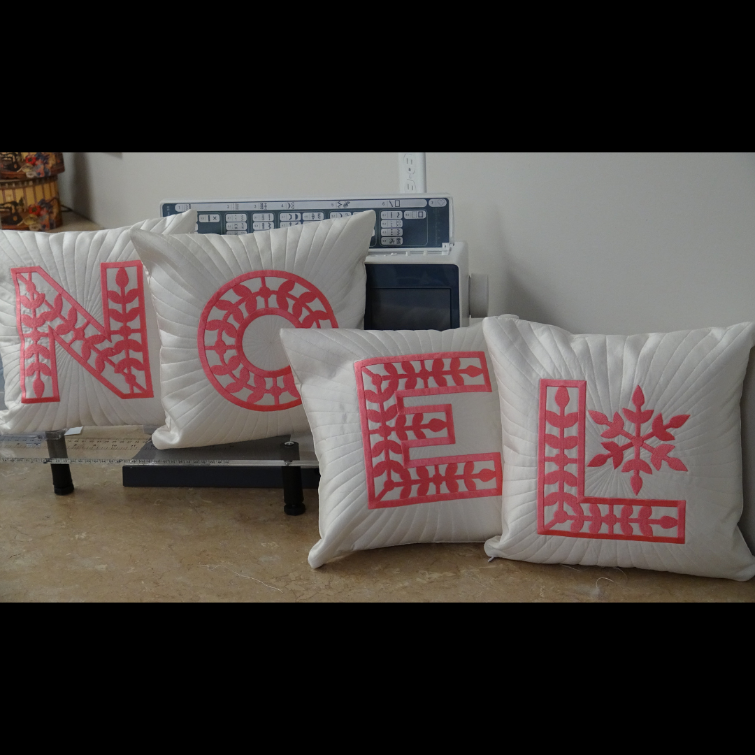 When you enroll in this class Margaret will show you exactly how to create your own, “NOEL” individual pillows as well as one pillow with the entire word on it.