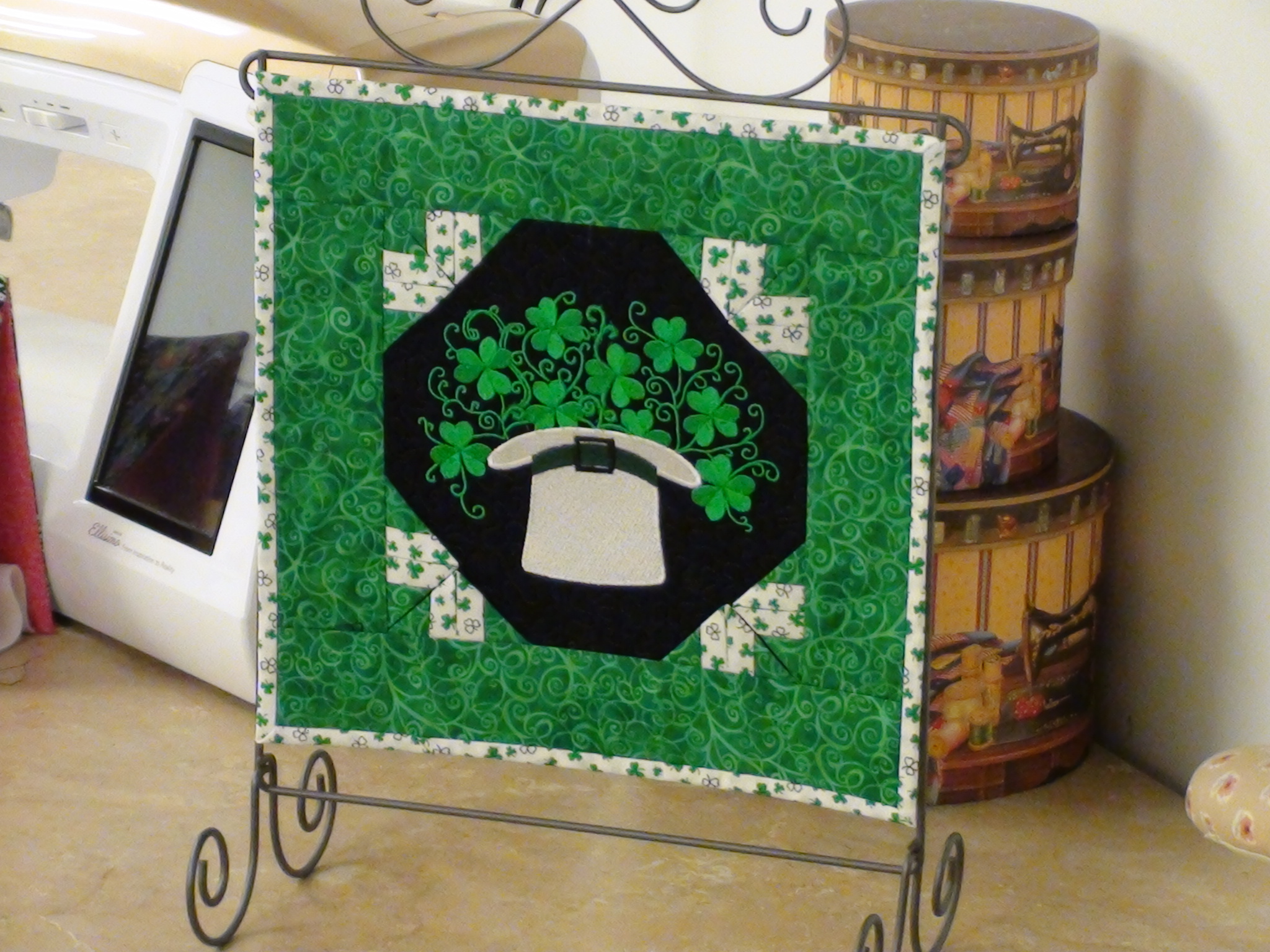 When you enroll in this class Margaret will show you exactly how to create your own, St. Pat’s Hat mini wall hanging, embellished with fun piped prairie points!
